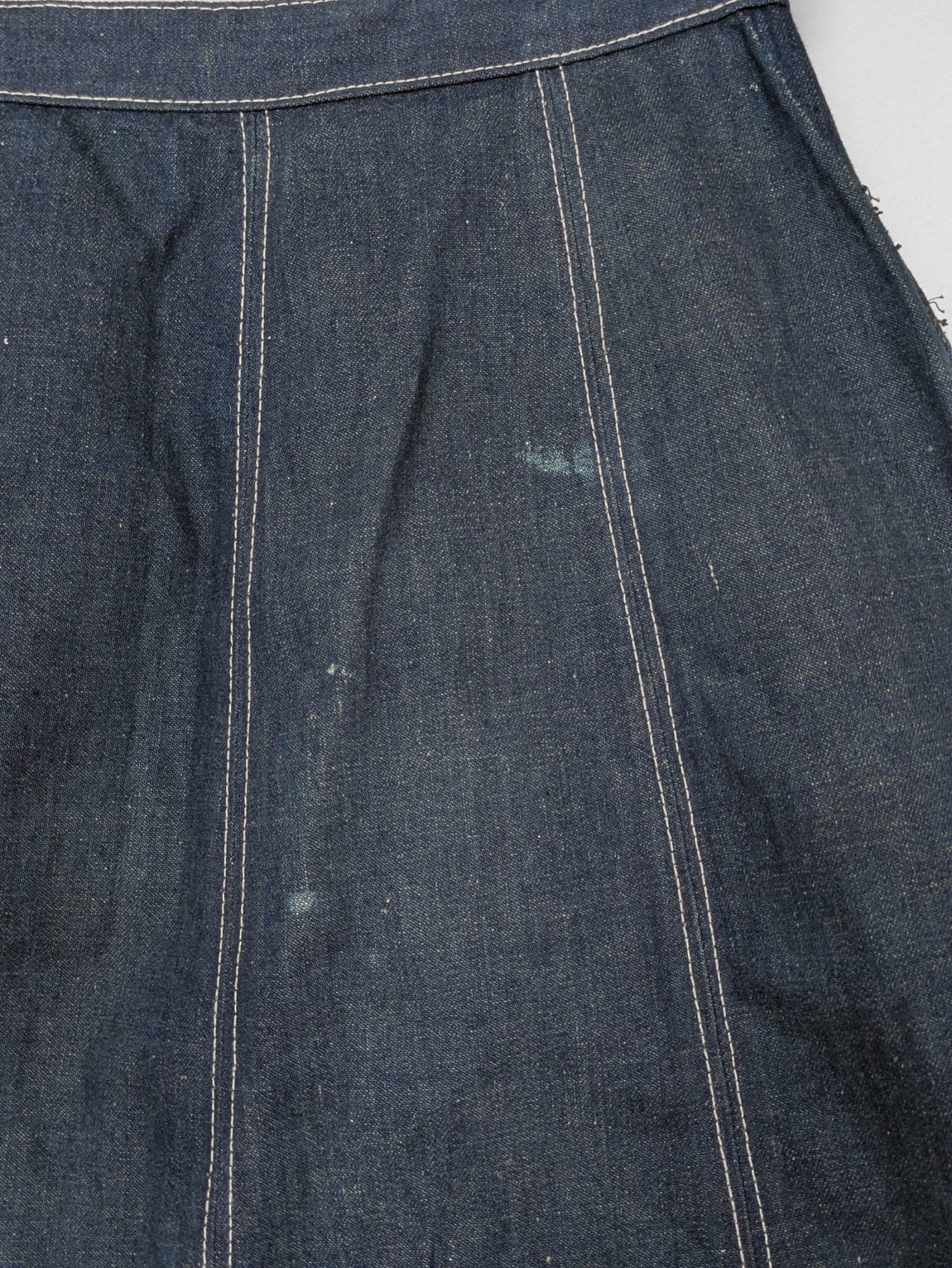 Incredible western studded skirt circa 40s/50s. Likley Stockton Of Dallas. Seems unworn, with storage stains that are less noticeable than the photos depict. Would benefit from a soak, but leaving this up to the buyer (let us know if you'd like us to take care of it though!)