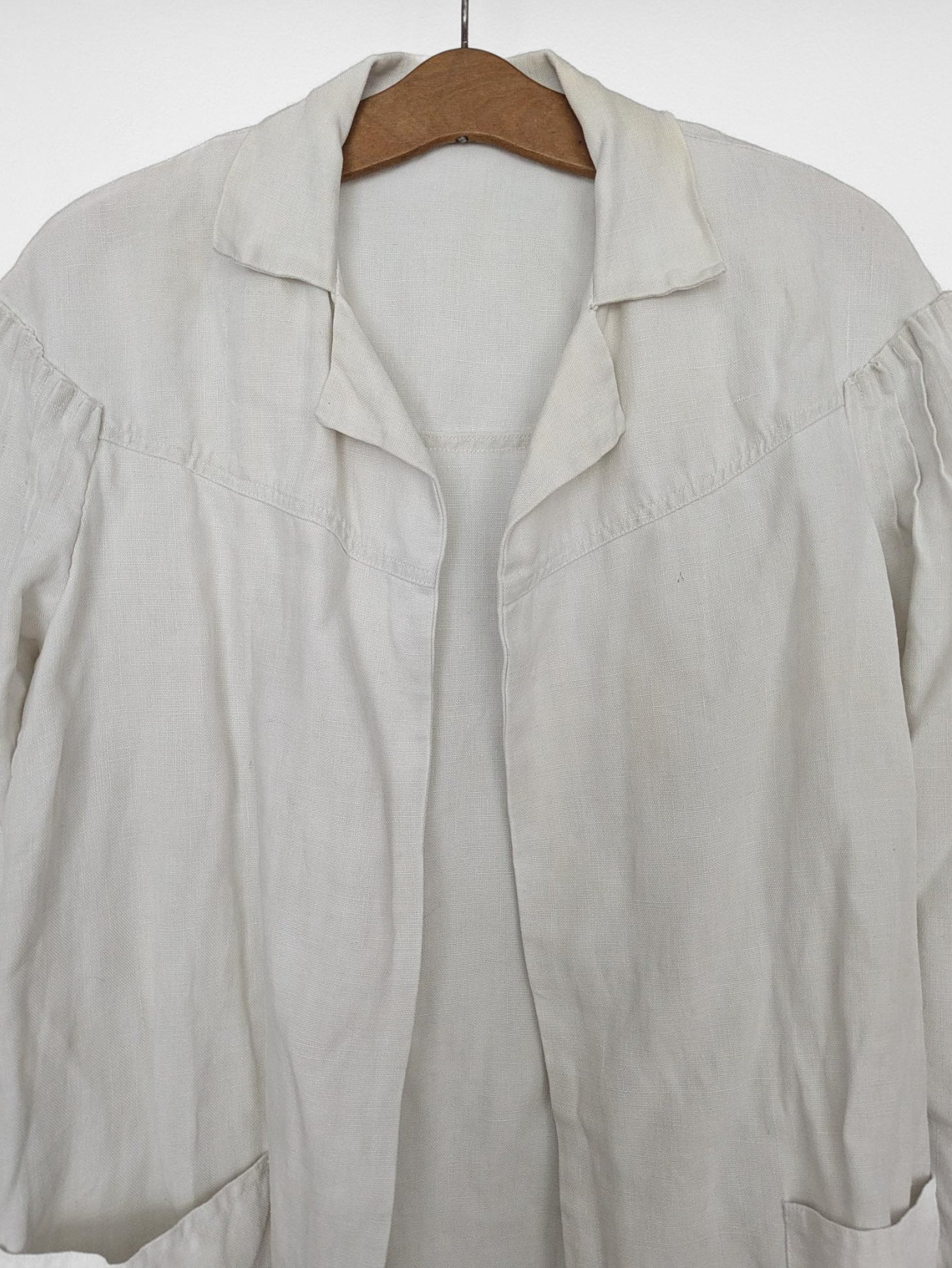 Early heavyweight linen jacket with the most incredible pleating at shoulders. Some small marks, presents beautifully overall.