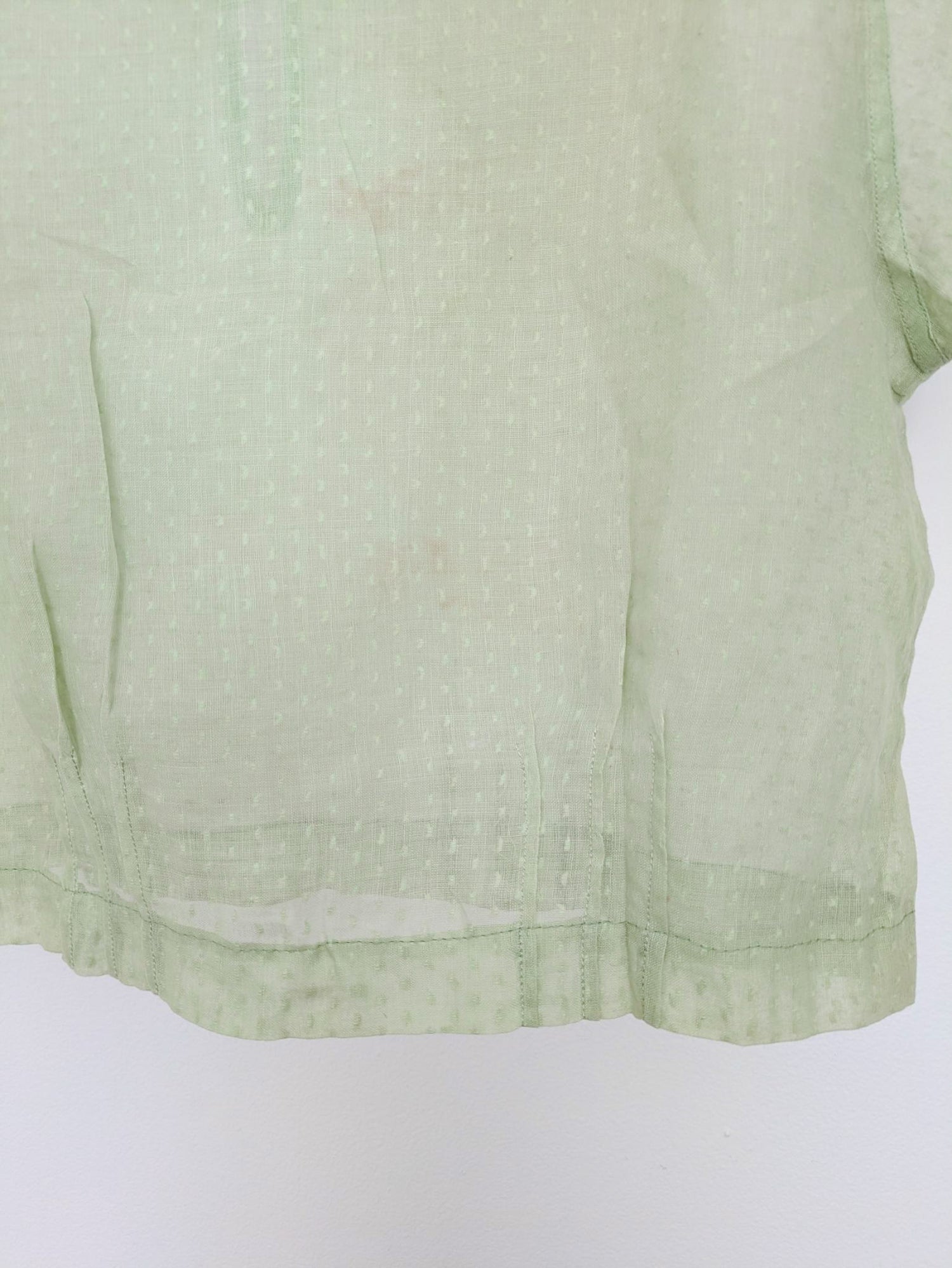 Lovely sheer blouse in textured Swiss dotted cotton. Keyhole neck closure and pintucks throughout. Some small marks as shown, presents well despite these!