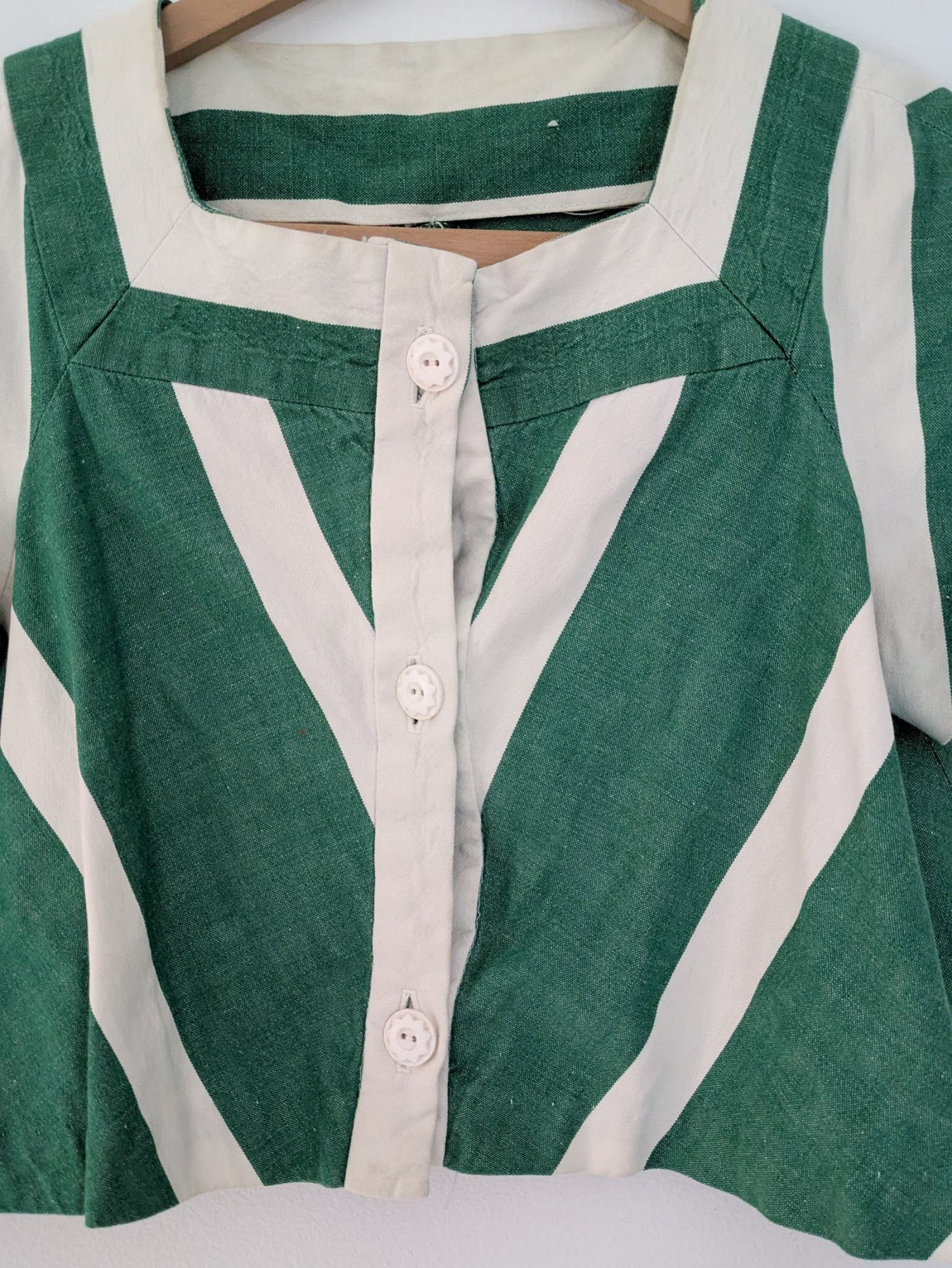 All cotton homemade blouse or bolero. Some very light discoloration to white areas. Shown on an xs but fits up to medium.