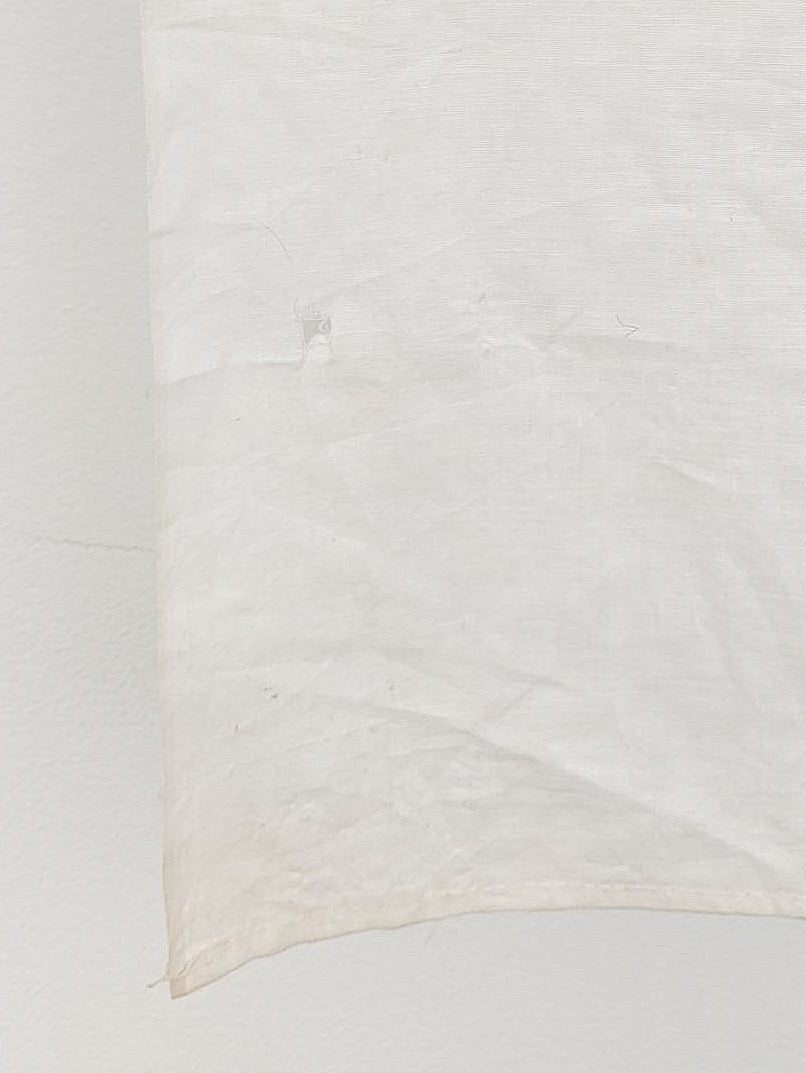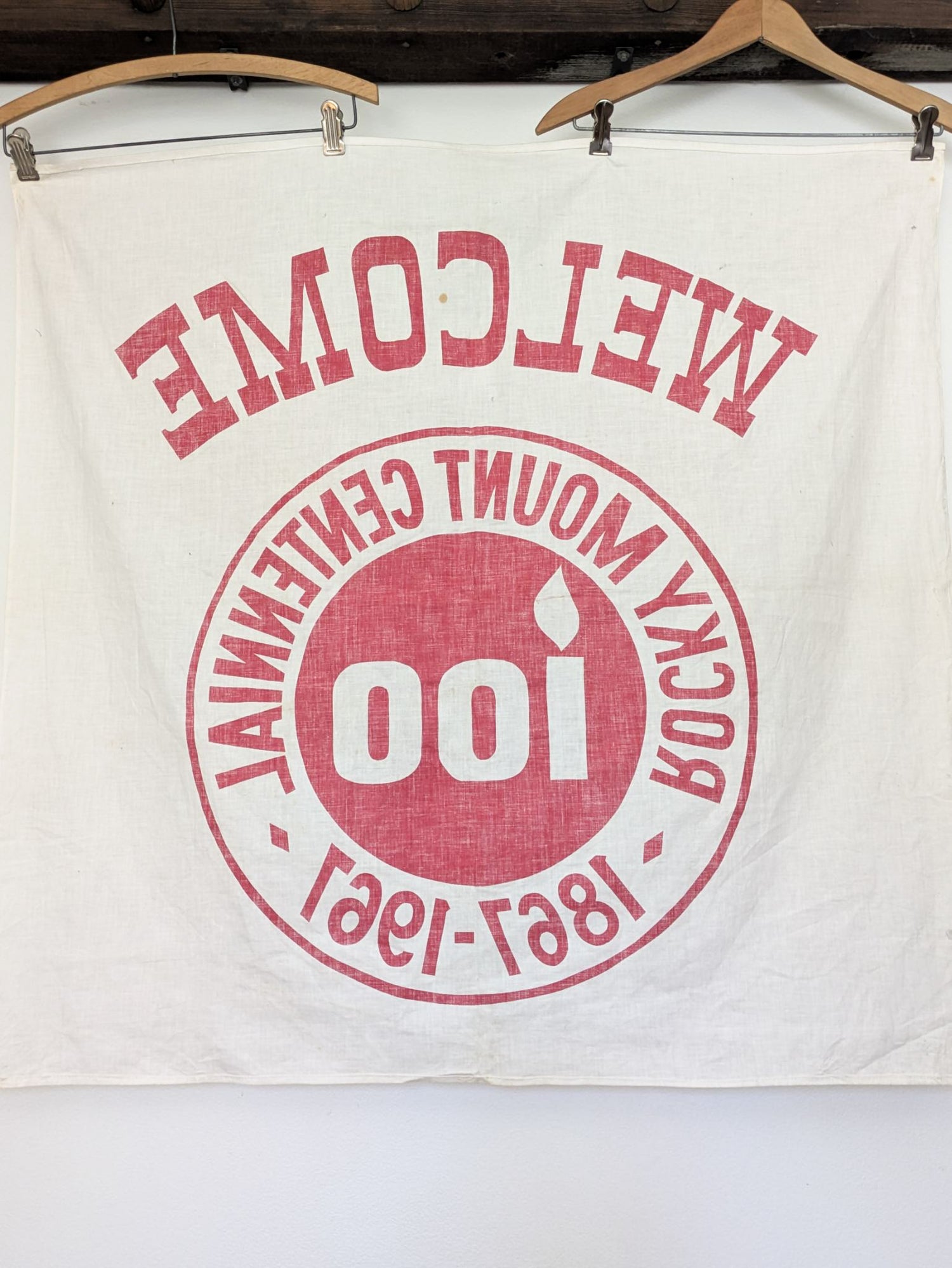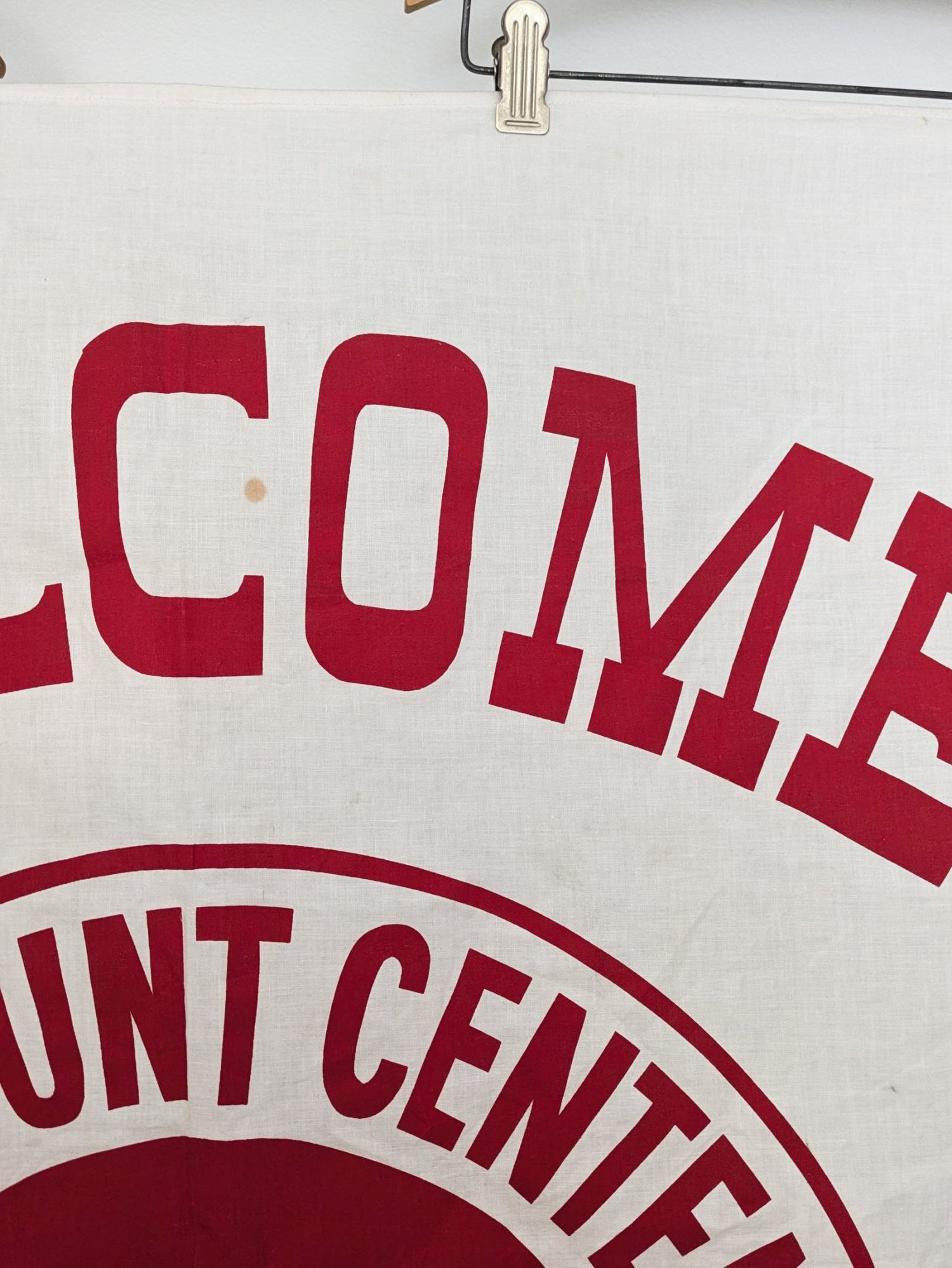 All cotton flag with bold red text. Some very small defects as shown. Lightweight.