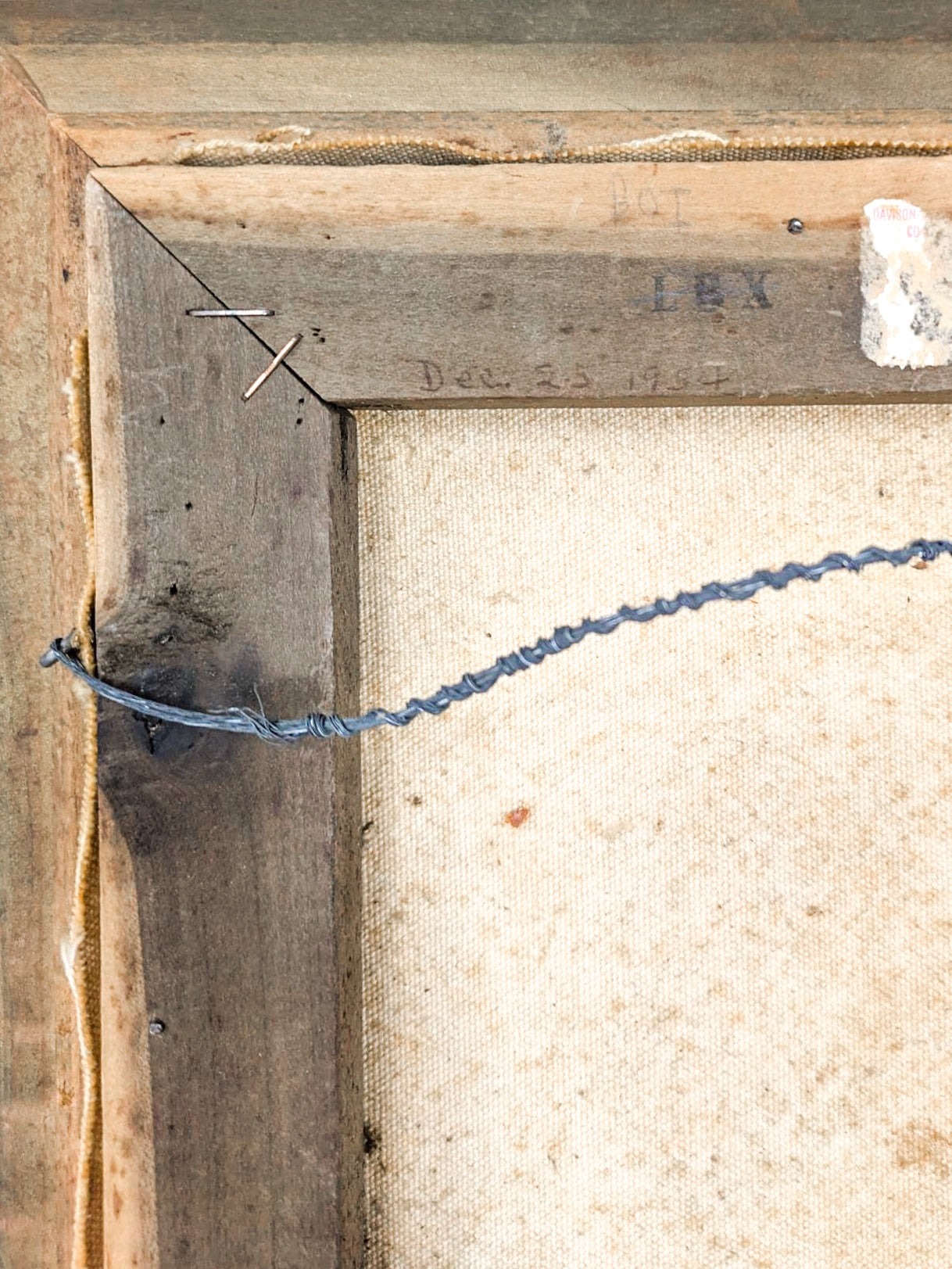 Framed 1950s oil painting of dog. A small bit of pink substance stuck to the front (pictured) which is fairly unnoticeable unless up close. Otherwise, a fine piece!